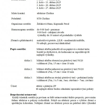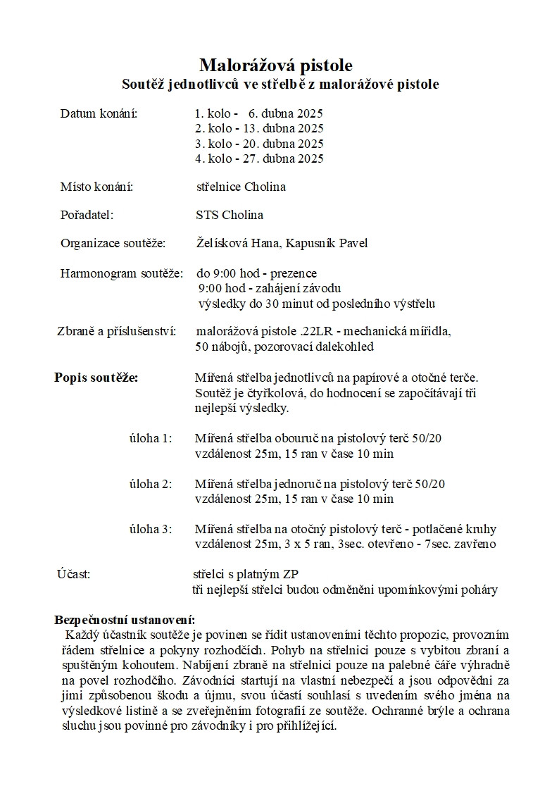 Úvod » Galerie » Pozvánka a propozice na klubovou soutěž z m a l o r á ž o v é p i s t o l e od 06.04.2025 do 27.04.2025