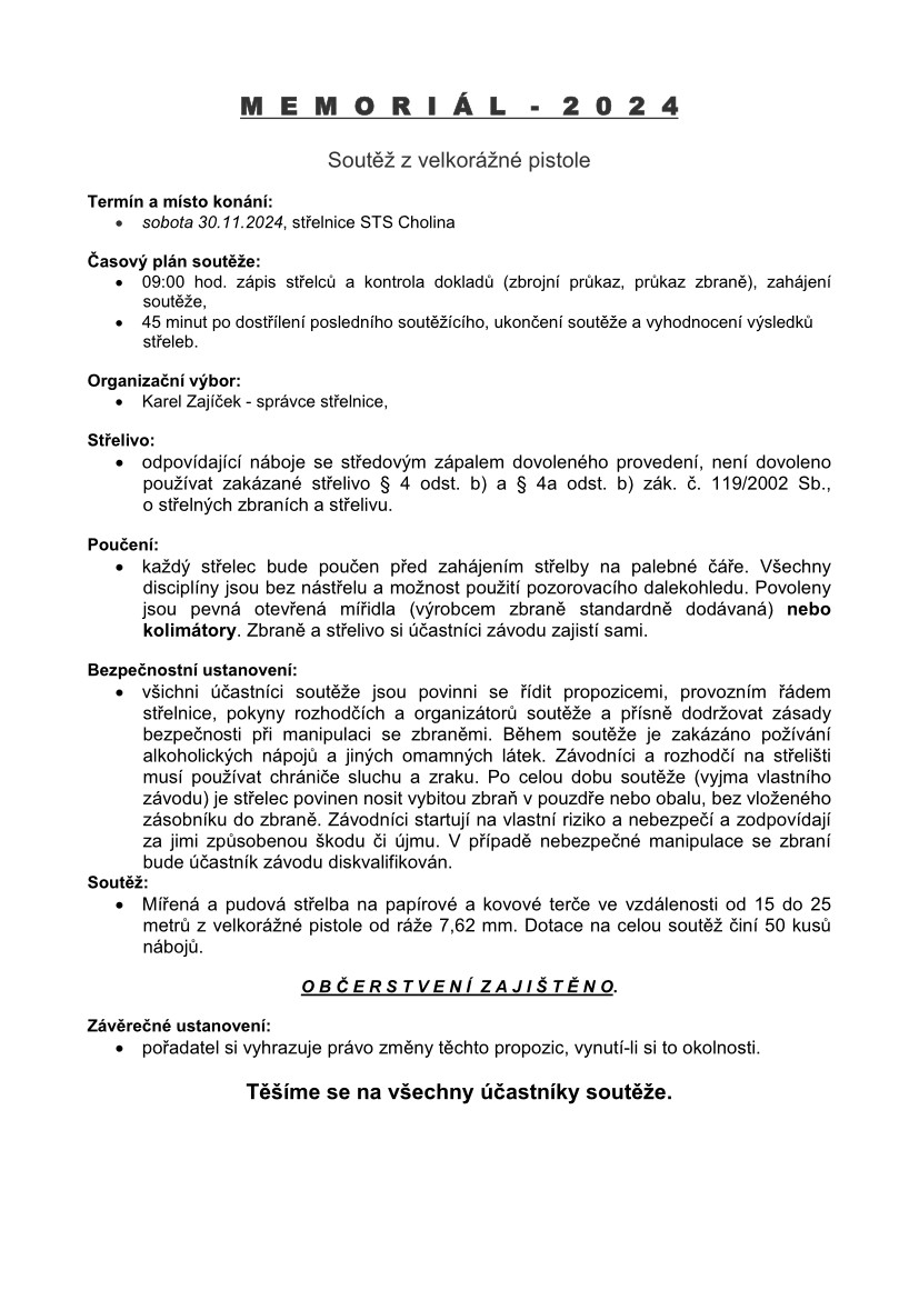 Pozvánka na klubovou soutěž M E M O R I Á L - 2024
