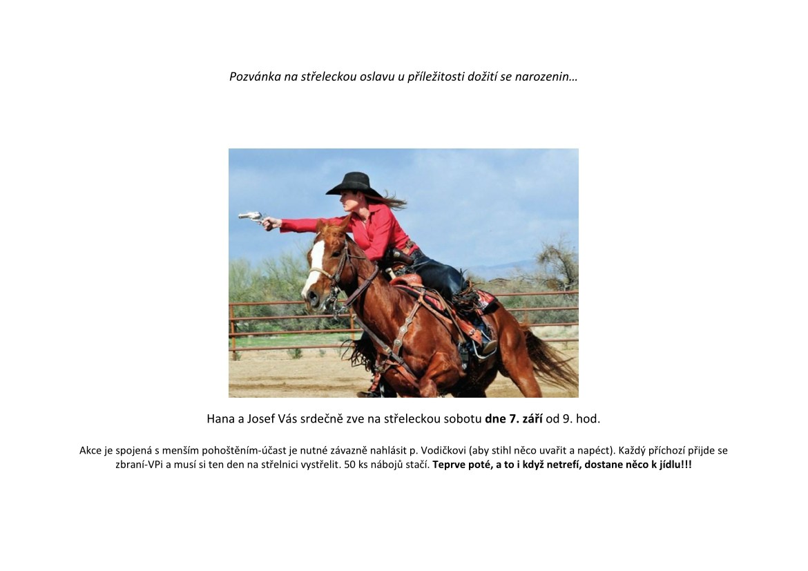 Pozvánka na střeleckou oslavu dožitých 60-tin