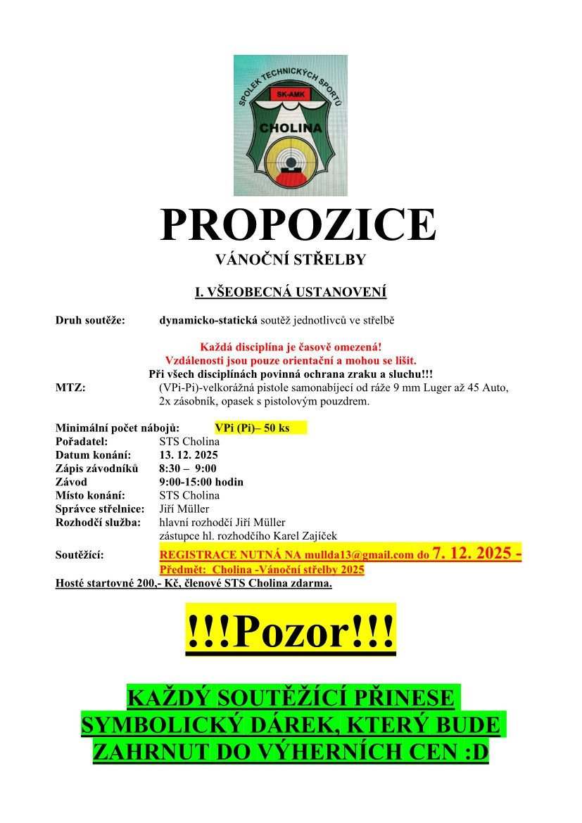 VÁNOČNÍ STŘELBY- 13.12.2025